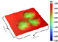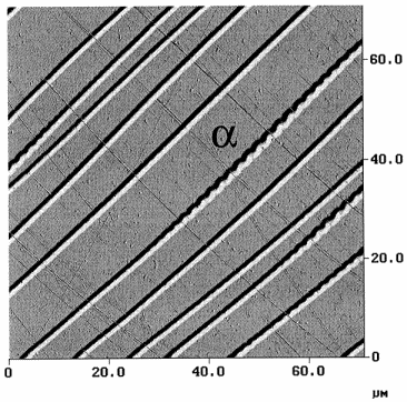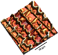 blotchy, irregular arrangement of features shown in optical and AFM