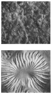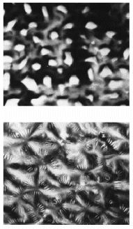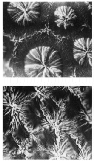 micrographs above. The closest patterns are those of drying liquids