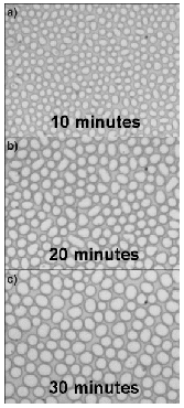 evolution changes from the formation of small spherical droplets, to
