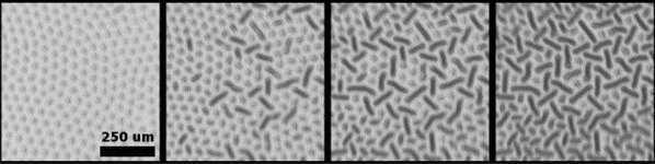 frosted glass. As time goes on, the units of pattern coalesce,