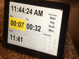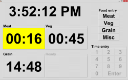 - Four spaces are provided for individual timers. We offer the possibility to label each timer as Meat, Vegetable, Grain, or Miscellaneous. Categories can be used more than once (e.g., there could be two grain timers counting down simultaneously)