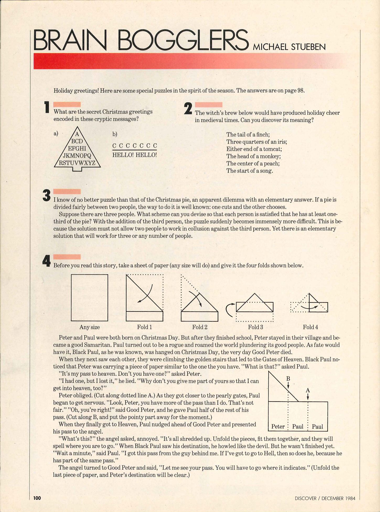 I first encountered the Peter and Paul story in the December 1984 edition of Discover