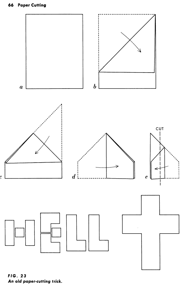 but it also touches on papercutting or “kirigami” and it includes the famous dissection puzzle usually known as “Heaven and Hell”.