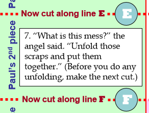 spell “HELL”. (Stueben's two-cut solution avoids this problem; Paul's two pieces are assembled independently of Peter's piece.)