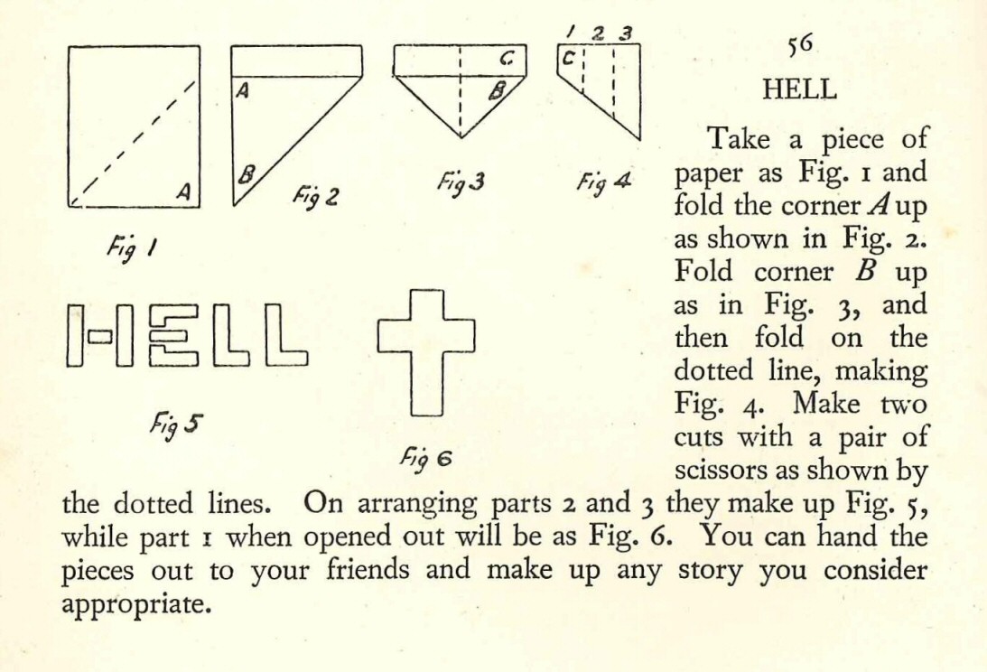 Saint Peter said, ‘Well, what is this? At least unfold and flatten out the pieces so I can see what you have.’ [When the pieces are laid out they spell HELL.]